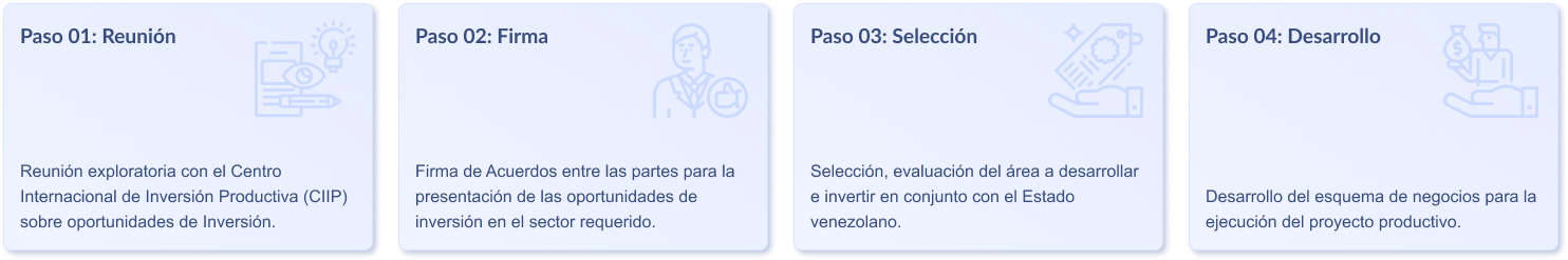 Con el objetivo de brindar oportunidades concretas, dinámicas y garantizadas para aquellos que depositen su confianza en nuestro país, mediante la consolidación de un nuevo modelo productivo con la participación activa de los sectores Nacionales e Internacionales.